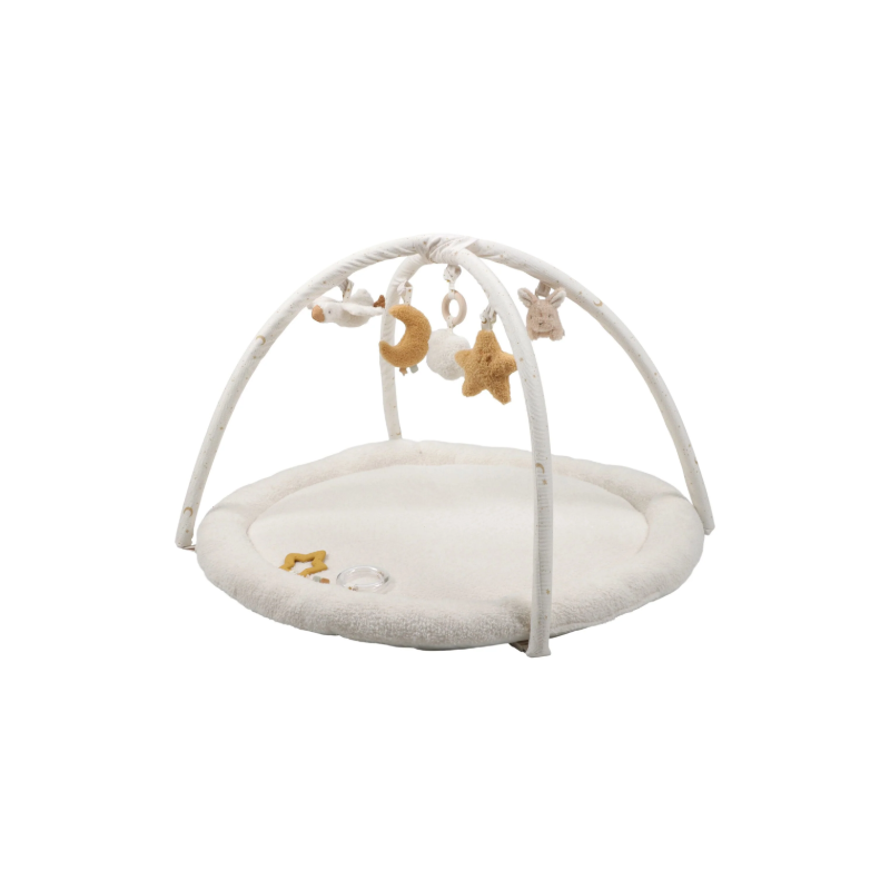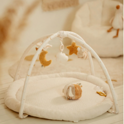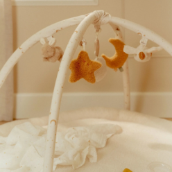 This soft and comfortable mat creates a safe play area with different textures, crackles, and playful details that stimulate the senses. Perfect for tummy time and first discoveries! The neutral natural tones fit effortlessly into any nursery, while the varied structures and sounds enhance the fun. A delightful place to play, feel, and grow. For little explorers with big dreams!